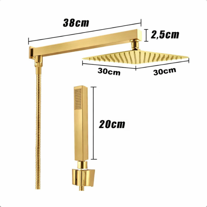 Chuveiro Lablanco em Aco Inox 304 Square – 300x300mm Desviador Brushed Gold