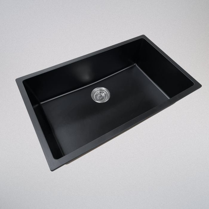 Cuba de Quartzo Lablanco 750x450x210mm Preta com sifao e valvula (R)