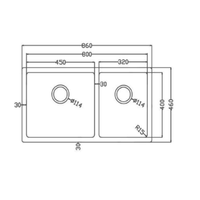 Cuba de Quartzo Lablanco Dupla 860x460x225mm Preta com sifao e valvula (R)