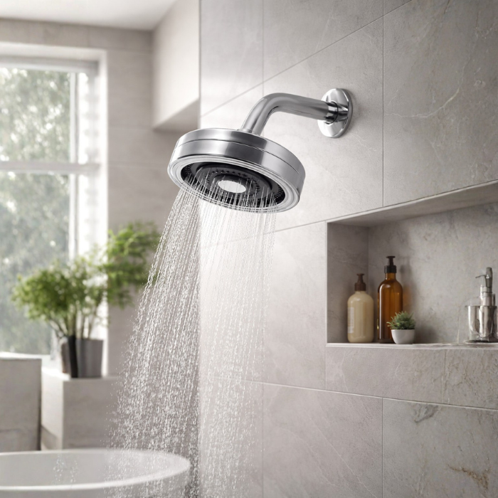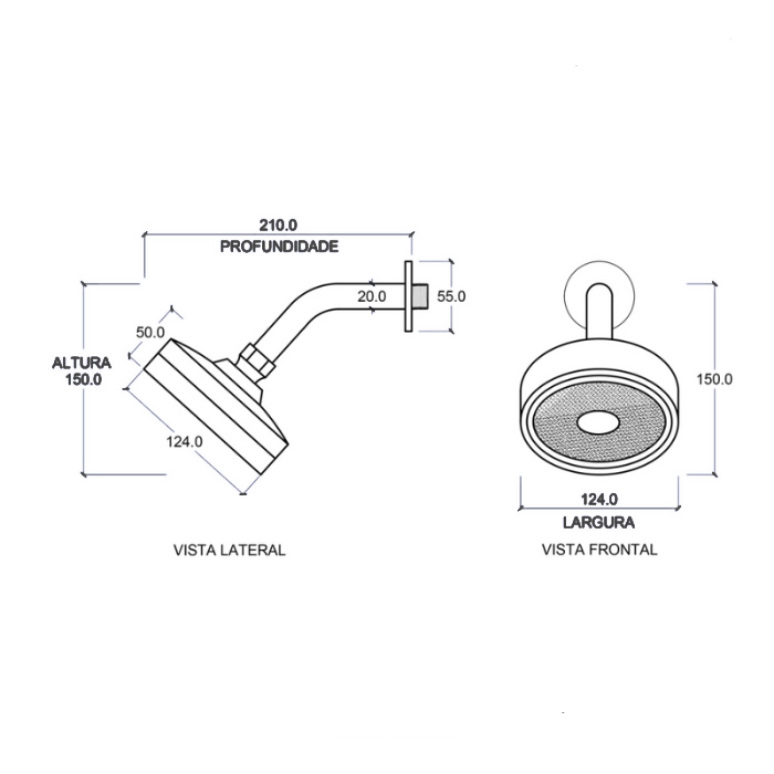 Ducha Chuveiro Autolimpante Redondo de Parede Curto Cromado Inox 201