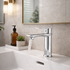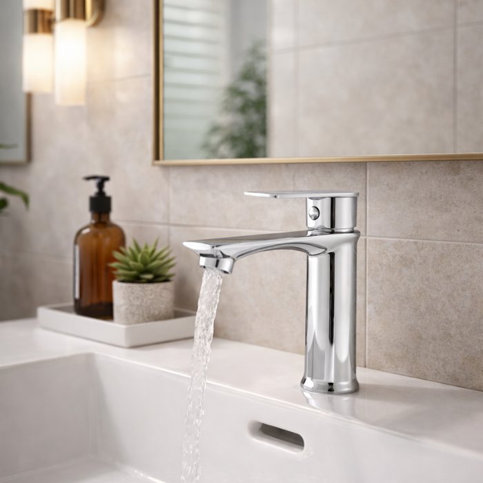 Torneira de Bancada Bica Baixa em Inox e ABS Cromada
